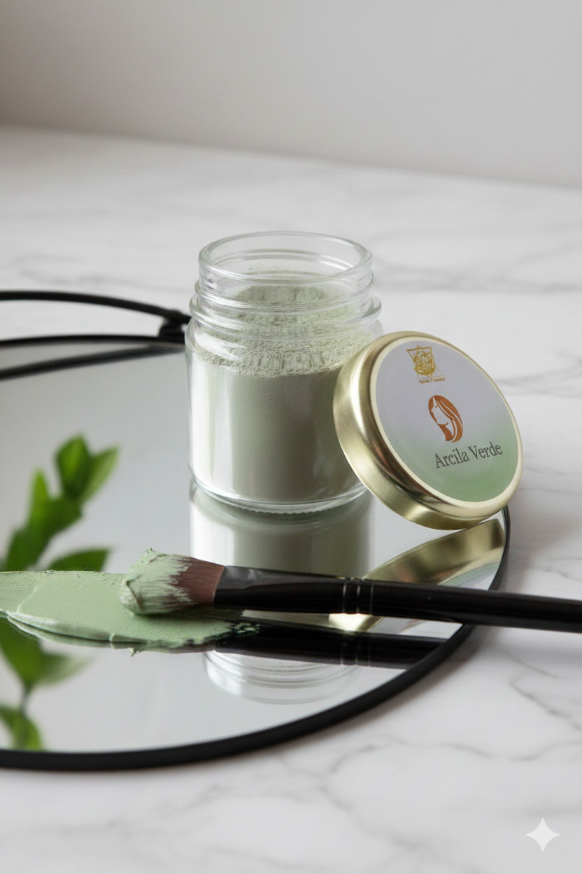 Arcilla verde para pieles grasas ¿Qué propiedades tiene la arcilla verde? El color verdoso de esta arcilla se debe a su contenido en magnesio y a los óxidos de hierro ferroso. Destaca por su acción astringente en la piel, siendo muy adecuada para pieles grasas por su gran poder absorbente que elimina impurezas y limpia la piel en profundidad. ¿Como hacer tu mascarilla? En un bol de vidrio pon una cucharada de arcilla verde en polvo y añade jugo de aloe vera o una cucharada de infusión removiendo hasta obtener una pasta. ¿Cómo aplicar la mascarilla de arcilla en la piel? Lava la cara con agua tibia y un jabón neutro svc. Con ayuda de un pincel plica la mascarilla de arcilla con ayuda por rostro, evitando el contorno de ojos. Deja actuar 15 minutos en la piel y un poco antes que sientas tirante la cara. Aclara con agua fresca, seca suavemente con la toalla y aplica tu crema hidratante de Lavanda, Rosa Mosqueta O LIFTING según tu necesidad.
