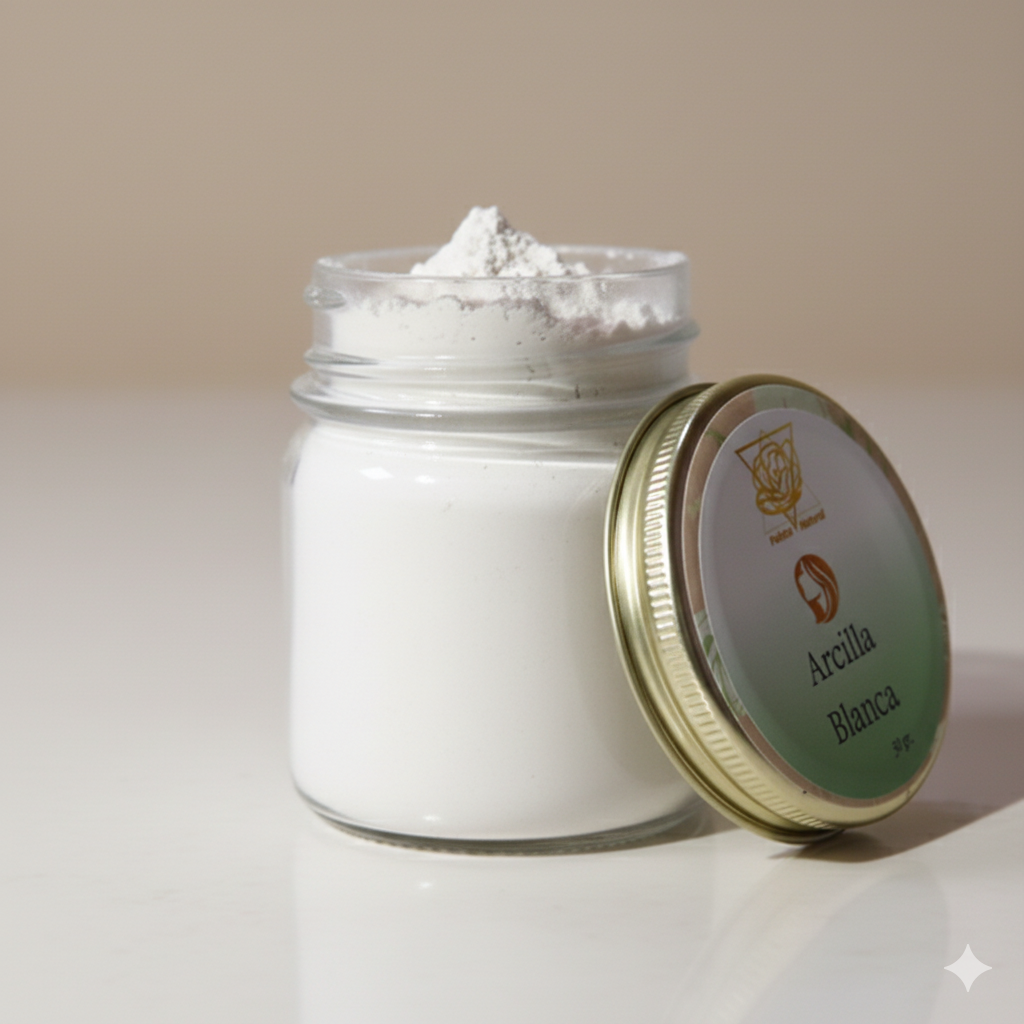 Arcilla blanca para las pieles secas ¿Qué propiedades tiene la arcilla blanca? Su color blanco se debe a que es una arcilla lavada por aguas. Por su contenido en aluminio tiene poder cicatrizante. Ideal para pieles secas y sensibles por sus propiedades hidratantes, calmantes y descongestionantes. ¿Como hacer tu Mascarilla de arcilla blanca? En un bol de vidrio pon una cucharada de arcilla blanca en polvo y añade agua de agua de rosas o alguna infusión de un té con la propiedad que desees (tibia) removiendo hasta obtener una pasta ¿Cómo aplicar la mascarilla de arcilla en la piel? Lava la cara con agua tibia y un jabón neutro svc. Con ayuda de un pincel plica la mascarilla de arcilla con ayuda por rostro, evitando el contorno de ojos. Deja actuar 15 minutos en la piel y un poco antes que sientas tirante la cara. Aclara con agua fresca, seca suavemente con la toalla y aplica tu crema hidratante de Lavanda, Rosa Mosqueta O LIFTING según tu necesidad.